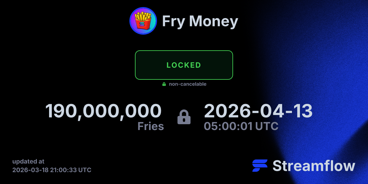 Who is ready for some burns? 🔥 19% of our total supply is locked until April 13, 2026. 47% is locked until September 5, 2026. Today I burned 3.5% of our supply worth over $500, once the 19% unlocks I am going to burn an additional 10% of the supply of $Fries. The remaining 9 percent will be reserved for adding to our permanently locked LP on Meteora. 🫡 https://app.streamflow.finance/contract/solana/mainnet/B4TVF5YdafEqAj1dWuE3XEpYRqusVTTUQoLP5iW6EvhY